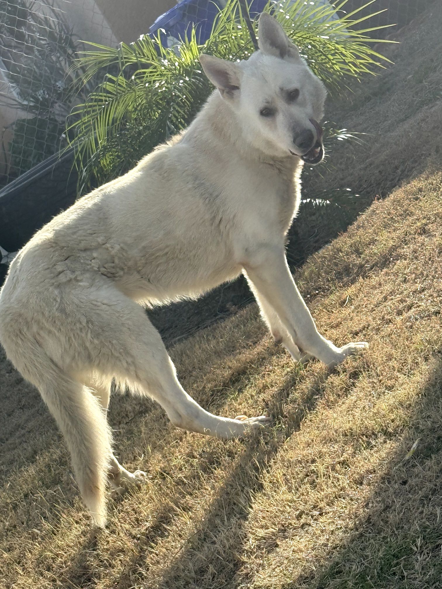 Thor is a 2 to 3 year old male White German Shepherd. He is fixed and up to date with his shots. He plays great with others. With the proper introductions he can co-mingle with no problems. House trained and kennel trained. He is a shelter rescue from the Devore SB County shelter. He acclimated very well to home life after leaving the shelter.