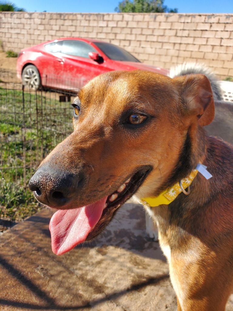 Meet Latte. We thought she was a Shepherd x Doberman but this picture sure does look like a Coonhound. Weighing in at a petite 39 lbs. Latte is on the smaller end of a medium sized dog. She was rescued from DACC Lancaster. Spayed and up to date on her shots including rabies. She’s estimated to be around 1 to 2 years old. Located in southern California.